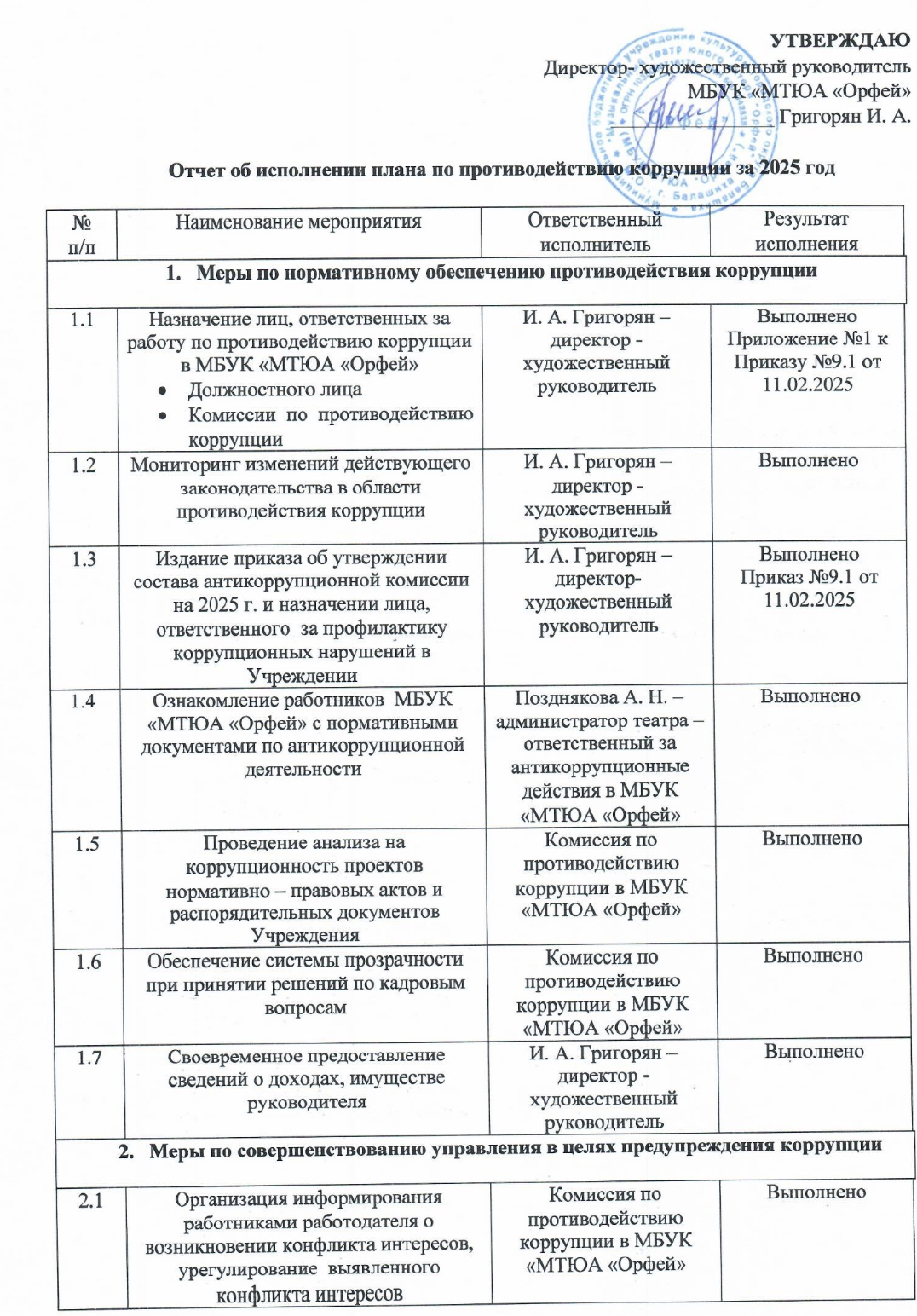 Отчет об исполнении плана по противодействию коррупции за 2025 год