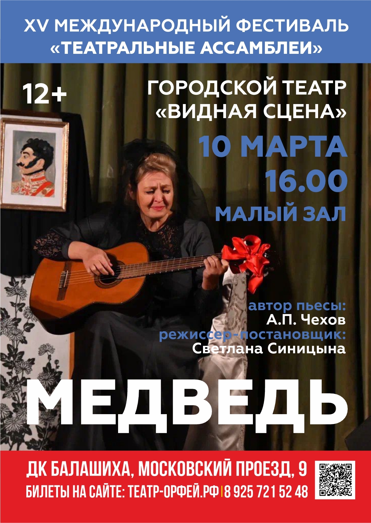 Искрометная пьеса-шутка Антона Павловича Чехова «Медведь» предлагает зрителю задуматься о природе человеческих отношений. Какова вероятность возникновения глубоких чувств в напряжённой ситуации? Сможет ли перерасти меланхолия в жизнеутверждающую силу? Чем закончится приезд кредитора Смирнова в усадьбу к помещице Поповой? Это предстоит узнать зрителю и насладиться нескучным шедевров Чехова, наполненным юмором и страстью.