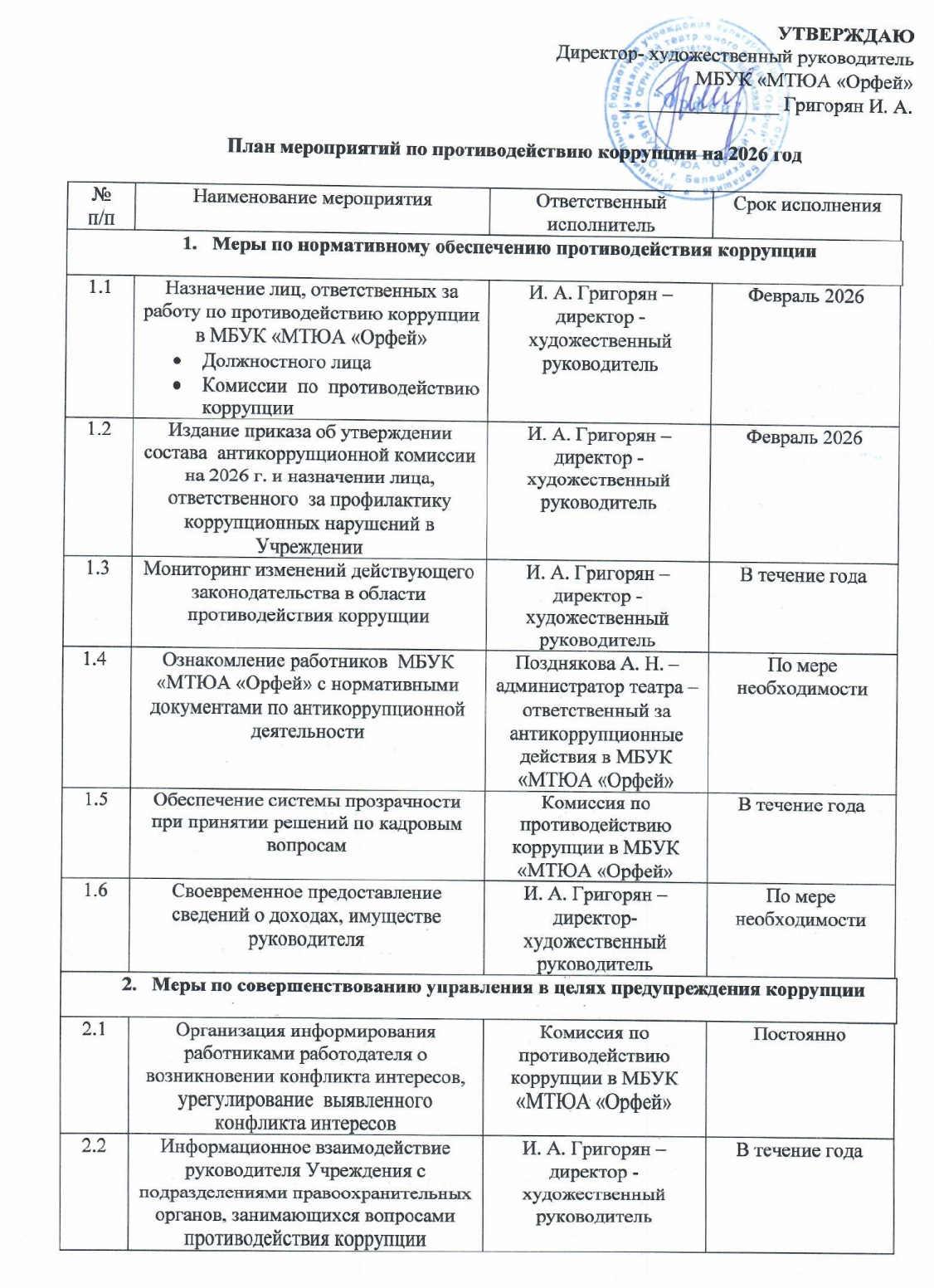 План мероприятий по противодействию коррупции на 2026 год